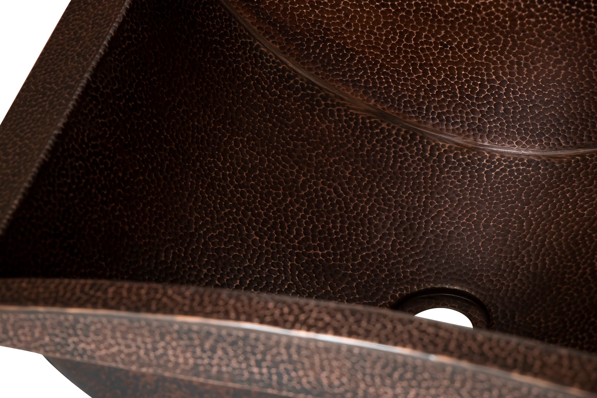 Apron Curved Bottom Hammered Copper Bathroom Sink with Sanded Dark Finish and